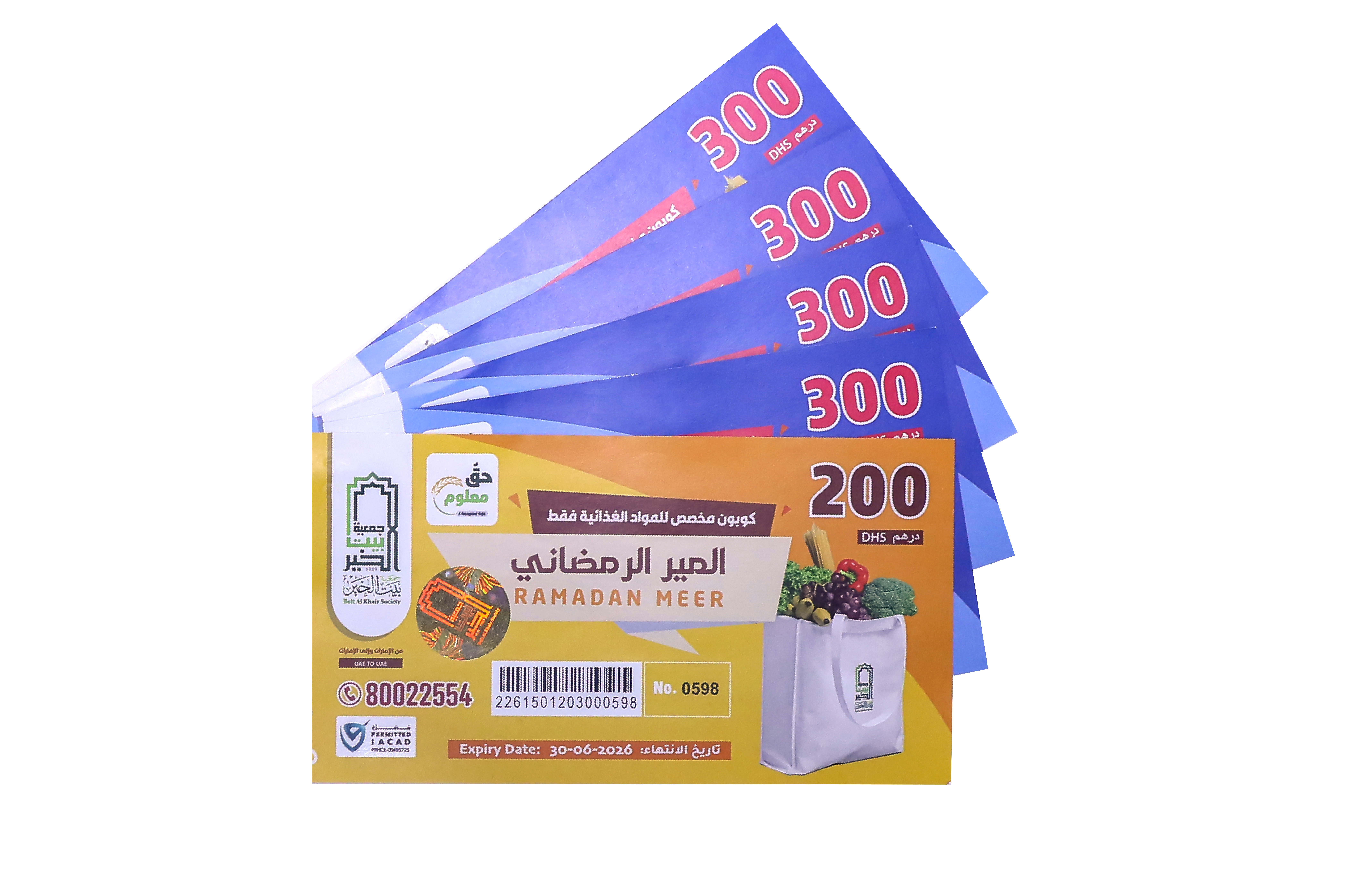 وتتسلم الأسر المستحقة المير الرمضاني عبر قسائم (كوبونات) بقيمة تتراوح ما بين 1000 إلى 3000 درهم، حسب عدد أفراد الأسرة، يشتري بها المستفيدون المواد التموينية اللازمة، كدعم غذائي للأسر في رمضان، من خلال الجمعيات التعاونية والمولات التي تعاقدت معها "بيت الخير" في مختلف إمارات الدولة، كما يتم تسليم المير عبر الهوية الوطنية، بموجب اتفاق "بيت الخير" مع عدد من الجمعيات في الدولة، وحسب قوائم الأسماء المعتمدة بالشخص المخول من كل أسرة.